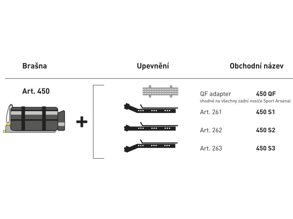 Akční set brašny art.450 a nosiče pod sedlo art.261 na kola větších rámů ve velikosti L a XL pro převoz lehčích nákladů. Originálním QuickFix systémem přináší rychlé a spolehlivé uchycení brašny k nosiči.