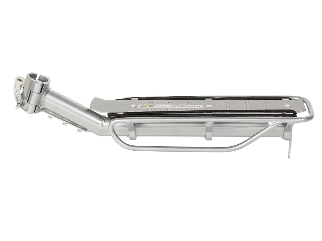 Hliníkový nosič na sedlovku pro převoz lehčích nákladů je ideální v případech, kdy nelze připevnit standardní nosiče, např. celoodpružená kola, kola s atypickou zadní stavbou, nebo modely bez návarků a závitů pro zadní nosič. Tělo nosiče je svařené z trubky a dělené objímky z hliníkové slitiny AW 6061