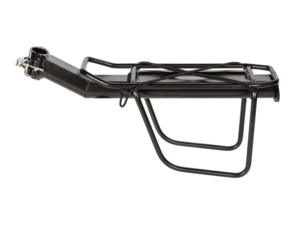 Zadní univerzální nosič na sedlovku pro převoz lehčích nákladů je ideální v případech, kdy nelze připevnit standardní nosiče, např. celoodpružená kola, kola s atypickou zadní stavbou, nebo modely bez návarků a závitů pro zadní nosič. Tělo nosiče je svařené z masivního kusu tenkostěnného protlačovaného profilu z hliníkové slitiny AW 6061.